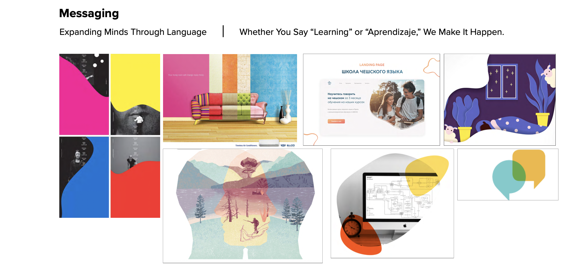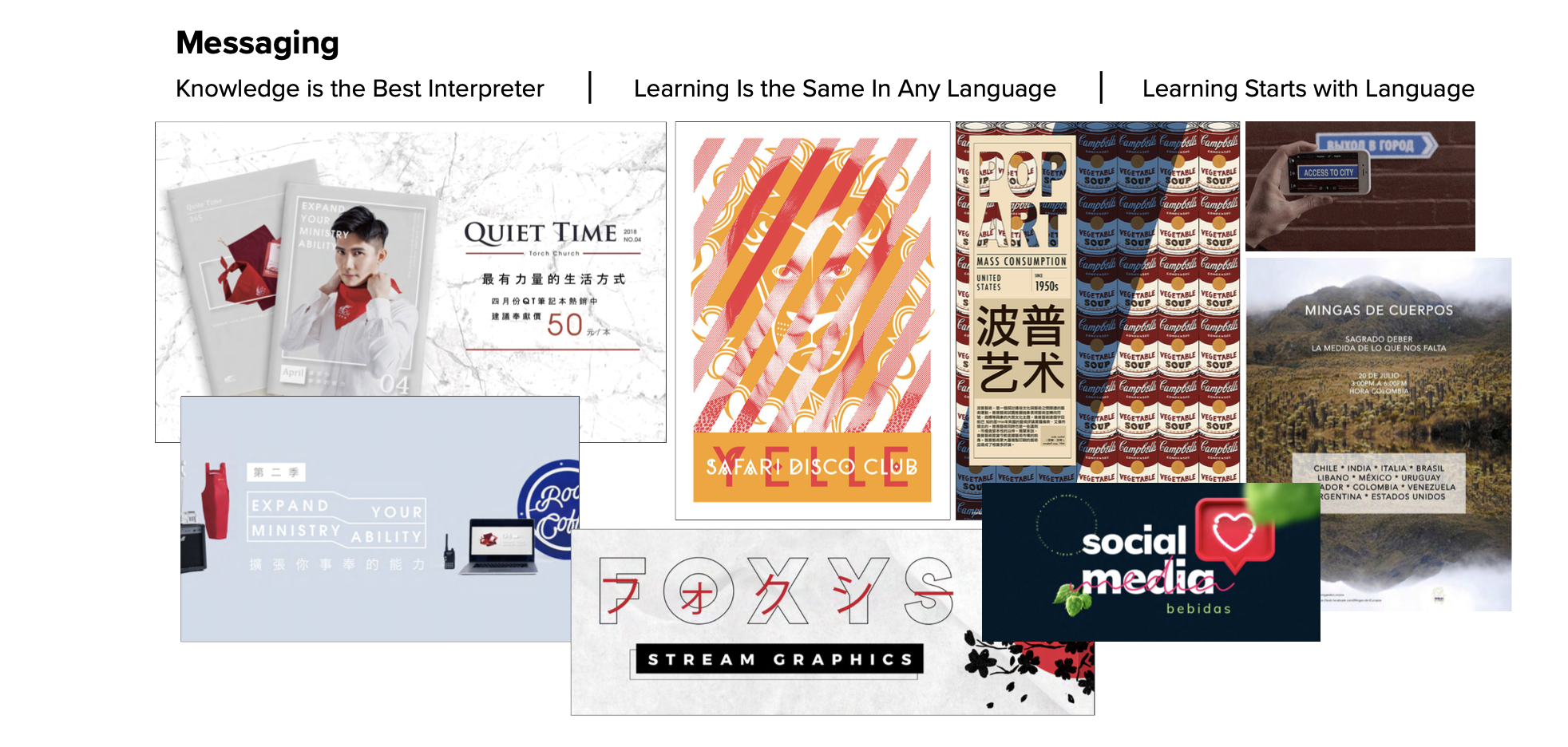 Doing some research on language comprehension, I learned about the three different types of bilingual speaking types, Compound, Coordinate, and Subordinate. These three became my focal point for further exploration of the campaign concept development.