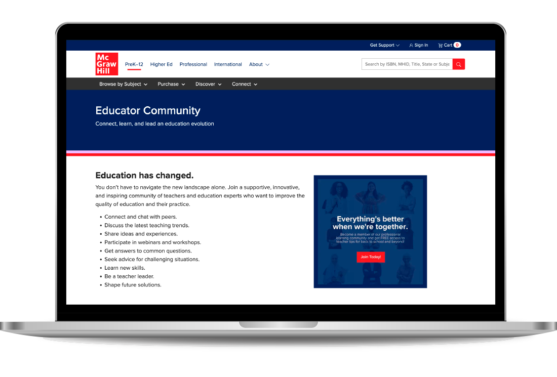 Our partners in charge of the “Communities” experience, wanted us to re-design their marketing site and craft a clearer story. As it stood, there were two marketing pages, “Product Communities” and “Educator Communities” even though they were all part of a single experience. So, we were tasked with combining that content and providing clear instructions on how to join “Communities” and which ones were relevant to which customer.