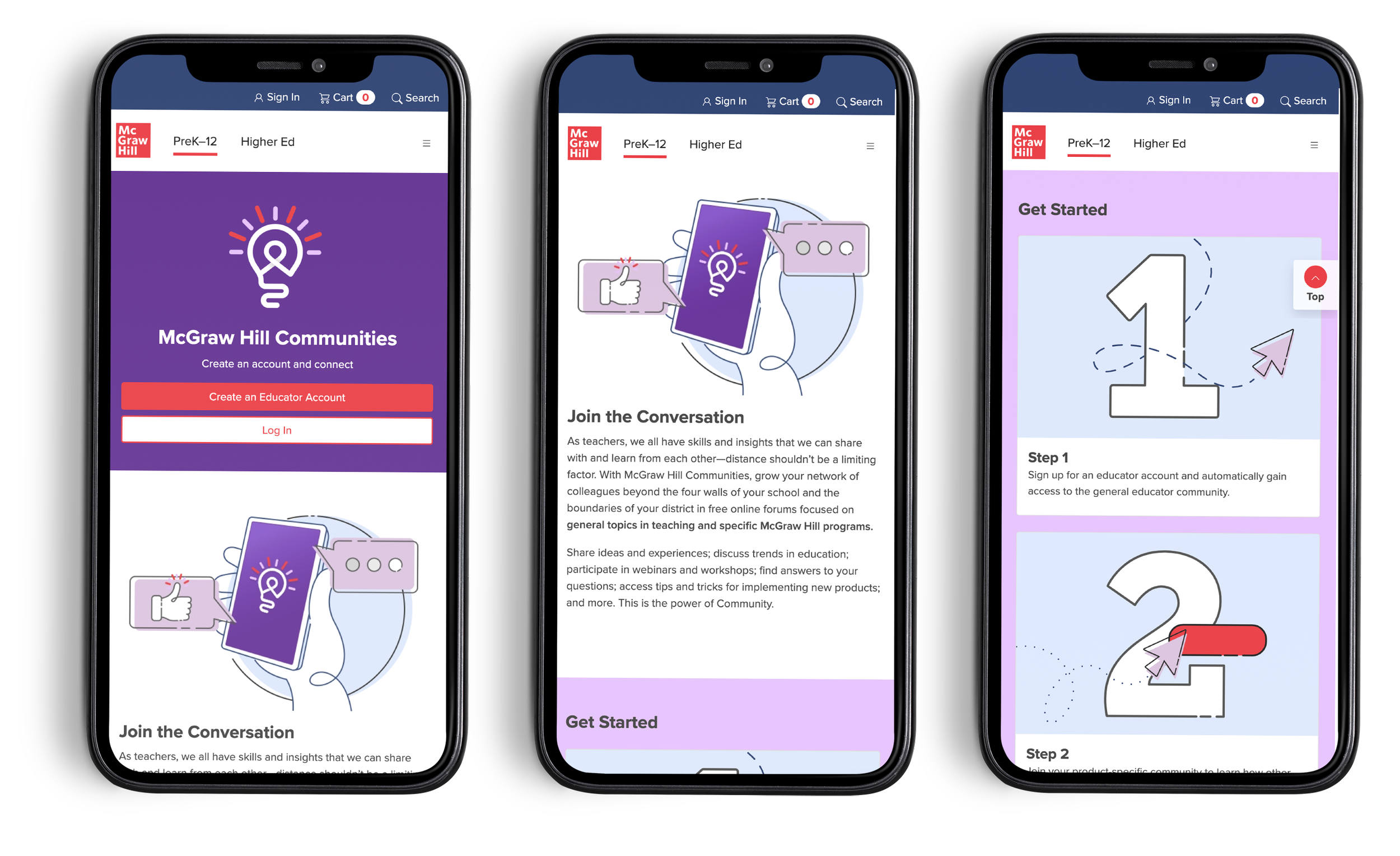 Marketing partner goals: We had two separate pages speaking to how and why you should join McGraw Hill Communities, one speaking to the Educator Communities and one speaking to Product Specific Communities, they wanted to combine that story, while explaining you needed to join the Educator Communities to join your Product Community.